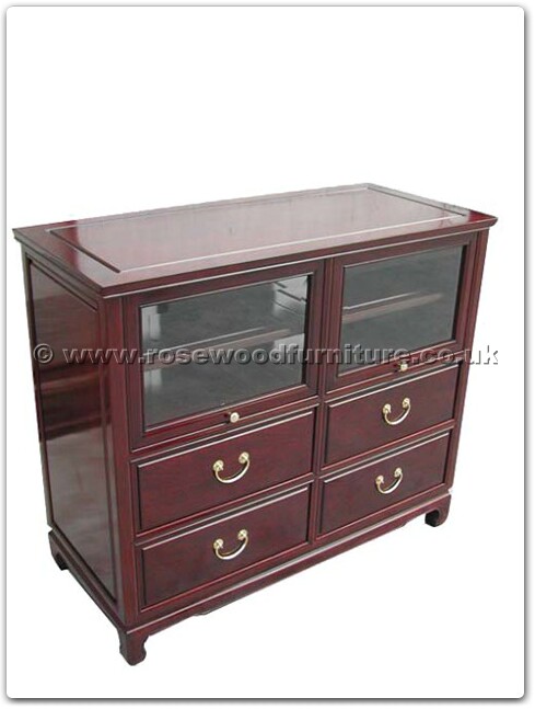 Rosewood T.v. cabinet plain design with 4 drawers and 2 glass folding doors
